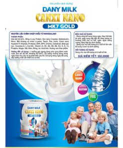 - Sữa bột dinh dưỡng Dany Milk Canxi Nano MK7 Gold giúp tăng hấp thu Canxi, bổ sung dưỡng chất ngăn ngừa loãng xương.
