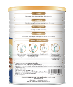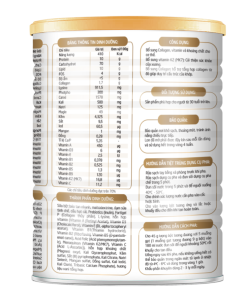 Sữa bột béo tan nhanh, maltodextrine, đạm sữa tinh chế, dầu hạt cải, Prebiotics (Inulin), Fortigel P (Collagen thủy phân), L-lysine, hỗn hợp vitamin (Vitamin A (Retinyl Acetat), Vitamin D3 (Cholecalciferol), Vitamin E (DL-alpha tocopheryl acetat), Vitamin B1 (Thiamin hydroclorid), Vitamin B2 (Riboflavin), Vitamin B5 (D-pantoth- enat canxi), Acid Folic (Acid pteroymonoglutam- ic), Menaquinon (Vitamin K2/MK7), Vitamin C (Acid L-Ascorbic)), hỗn hợp khoáng chất (Magnesi oxyd, Kali Glycerophosphat, Kẽm sulfat, Sắt (III) pyrophosphate, Kali Citrate, Natri Selenit, Mangan sulfat, Đồng sulfat, Kali lodid, Kali Clorid, Tribasic Calcium Phosphate), huong liệu vani tổng hợp.