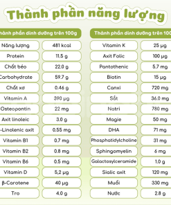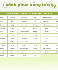 8. Thông tin dinh dưỡng có trong 100g sữa: