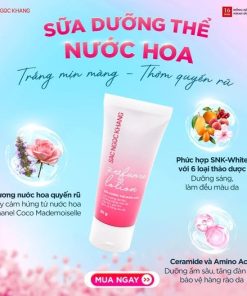 Sự thoải mái khi sử dụng sản phẩm là yếu tố quan trọng để làn da được yêu thương mỗi ngày. Với kết cấu gel-cream mỏng nhẹ, Sữa Dưỡng Thể Nước Hoa Sắc Ngọc Khang mang lại: