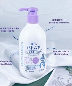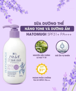 Sữa Dưỡng Thể Hatomugi The Tone Up UV Milky Gel UV Care & Tone Up SPF31 PA+++ giúp dưỡng ẩm cho da mềm mịn nhờ chiết xuất Ý Dĩ. Bên cạnh đó, sản phẩm có tác dụng hiệu chỉnh sắc da và nâng tông da tự nhiên, đồng thời ngăn chặn tia UV với chỉ số SPF31 PA+++.