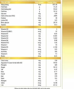 Sữa bột (50%-55%), whey protein, chất xơ hòa tan, L- Lysine HCL, taurine, choline , sữa non, bột hạt óc chó, bột sachi, bột hạnh nhân, hỗn hợp khoáng chất, canxi từ tảo biển đỏ, vitamin A, D3, B1, B2, B3, C, B5, B6, B12, K2,..
