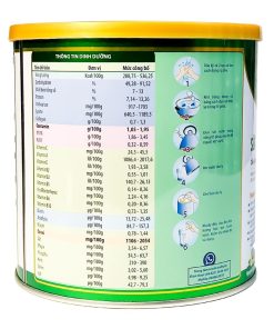Nguyên liệu thực phẩm: sữa bột gầy tan nhanh (93%), bột nghệ (4%), curcumin (1,5g/ 1000). MUFA, Xơ hòa tan, Collagen, L-lysine, Khoáng chất (Calcium carbonate, Potassum glycerophos-phate, Magnesium sulphate, fenic (III) diphosphate, Zinc sulphat, Potassium iodide, Sodium selenite), vitamin (acid L-ascorbic (Vitamin C), Calcium-D-pantothenate (Vitamin B5), D-alpha-Tocopherol (Vitamin E), Nicotinamide (Vitamin B3), riboflavin (Vitamin B2), Retinol (Vitamin A), Pyridoxin hydroclorid (vita-min B6), thiamin hydrochloride (Vitamin B1), acid Pteloymonoglutamic (Acid folic)), PUFA, hương Vani tổng hợp, chất tạo ngọt tự nhiên: Steviol glycosides. Thành phần có chứa sữa.