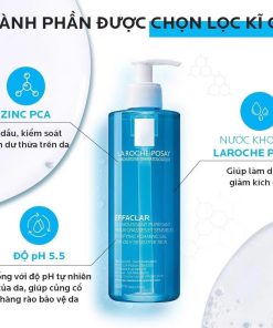 Sửa rửa mặt La Roche-Posay Effaclar dành cho làn da dầu và nhạy cảm giúp ngăn ngừa và hỗ trợ giảm mụn tối đa với kết cấu dạng gel trong rất dễ dàng tạo bọt cùng với công thức không chứa dầu, không cồn, lành tính cho làn da. Sản phẩm nhẹ nhàng làm sạch làn da từ sâu trong lỗ chân lông, loại bỏ bụi bẩn cùng dầu thừa trong da, làn da không hề khô rít, căng rát, mà vẫn mềm mịn, sạch thoáng và đầy sức sống.
