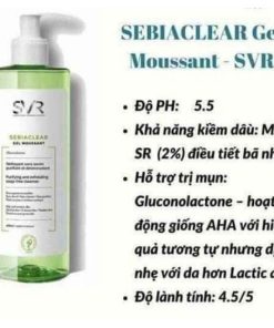 Sữa rửa mặt SVR có độ pH chuẩn. Thành phần chứa Gluconolactone có khả năng tẩy da chết dịu nhẹ giúp. Qua đó tăng hiệu quả sạch sâu và Niacinamide giúp kháng viêm, se mụn hiệu quả.
