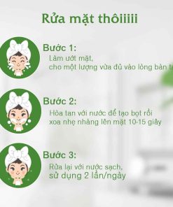 - Làm ướt mặt, cho một lượng vừa đủ vào lòng bàn tay, hòa tan với nước để tạo bọt rồi xoa nhẹ nhàng lên khuôn mặt 10 – 15 giây. Sau đó rửa lại với nước.