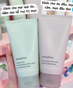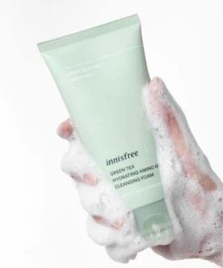 - Sữa rửa mặt Innisfree Green Tea Hydrating Amino Acid Cleansing Foam cũng làm sạch da dịu nhẹ, loại bỏ các tạp chất bên trong lỗ chân lông và lớp trang điểm, đồng thời ngăn ngừa tình trạng khô da sau khi rửa mặt nhờ kết hợp rễ trà giàu saponin.
