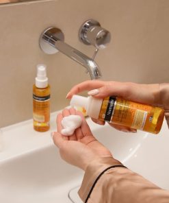 - Làm ướt da mặt. Ấn 1 – 2 pump ra tay nhẹ nhàng áp bọt sữa rửa mặt lên da và massage nhẹ nhàng trên cả khuôn mặt.