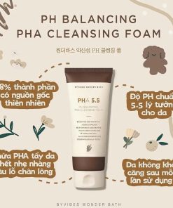 Sữa Rửa Mặt Byvibes Wonder Bath PH Balancing PHA Cleansing Foam Hàn Quốc là dạng sữa rửa mặt tạo bọt có độ PH 5.5 và chứa thành phần PHA giúp làm sạch da, ngăn ngừa mụn và hỗ trợ điều trị mụn hiệu quả. Bên cạnh đó, sản phẩm còn chứa thành phần tự nhiên dịu nhẹ cho da nên không làm khô da mà còn giúp giữ ẩm cho da được các chuyên gia da liễu khuyên dùng.