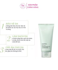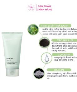 Sữa rửa mặt Innisfree trà xanh có tác động dịu nhẹ nhưng giúp làm sạch, loại bỏ cặn bẩn và vi khuẩn hiệu quả. Thành phần bao gồm 88% chiết xuất lá trà xanh tự nhiên nguyên chất, giàu độ ẩm và các thành phần chống oxy hóa, sữa rửa mặt trà xanh sẽ giúp làn da luôn mềm mại và căng mịn.