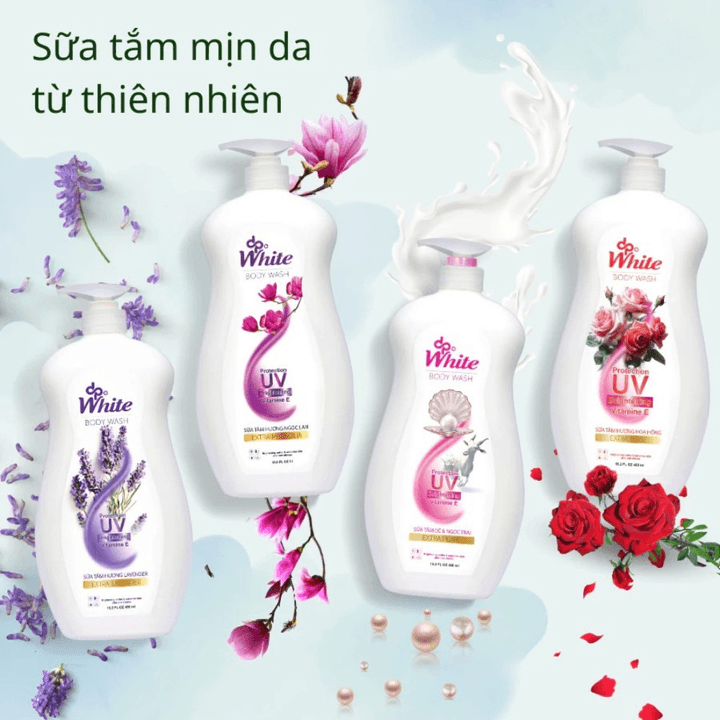 ✔ Có 4 mùi hương: Sữa Dê & Bột Ngọc Trai, Hoa Hồng, Lavender và Ngọc Lan.