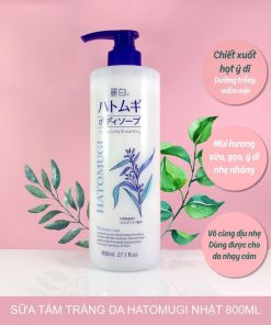 Sữa tắm HATOMUGI Reihaku Hatomugi Body Soap chứa chiết xuất từ ý dĩ – là thành phần phổ biến trong các sản phẩm chăm sóc da, làm đẹp ở Nhật Bản. Ý dĩ rất giàu các vitamin nhóm B, vitamin E, axit béo… có khả năng cung cấp độ ẩm cho da ẩm mượt hơn, đồng thời giảm sự hình thành nếp nhăn, làm mờ các đốm nâu, dưỡng da sáng và đều màu. Ngoài ra, các enzyme phân giải protein có trong chiết xuất hạt ý dĩ có thể hòa tan lớp keratin của da, do đó giúp làm mềm và làm ẩm da.