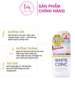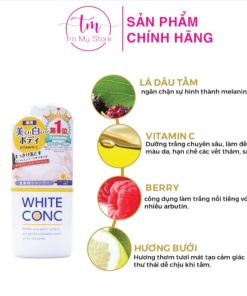 Sữa tắm trắng toàn thân White Conc giúp rửa sạch các chất sừng, hắc tố melanin “thủ phạm” chính gây nên hiện tượng nám, tàn nhang, đốm nâu và sạm.