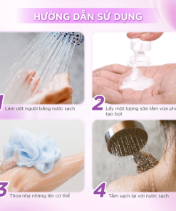 – Thoa đều lên toàn thân và massage trong vài phút, tạo bọt vừa phải