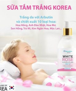 White Rose Shower Gel dùng để tắm, làm sạch cơ thể, giúp da trắng sáng mịn màng nhờ hoạt chất Arbutin cũng như chiết xuất từ 10 loại hoa Hàn Quốc.