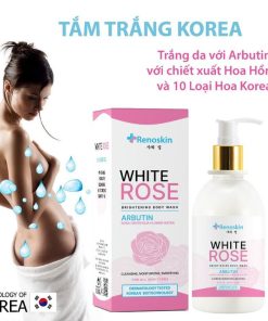 Sữa tắm trắng Hoa Hồng White Rose Renoskin với hoạt chất Arbutin chiết xuất Hoa Hồng và 10 loại hoa Hàn Quốc giúp làn da trắng sáng, mịn màng cũng như quyến rũ với hương Hoa Hồng.