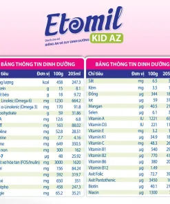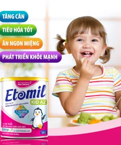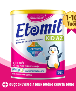 - Etomil Kid AZ là sản phẩm dinh dưỡng dành cho trẻ từ 1 – 10 tuổi; đáp ứng nhu cầu năng lượng tăng cao của trẻ biếng ăn, suy dinh dưỡng; giúp cải thiện tình trạng suy dinh dưỡng và mau chóng phục hồi sức khỏe.
