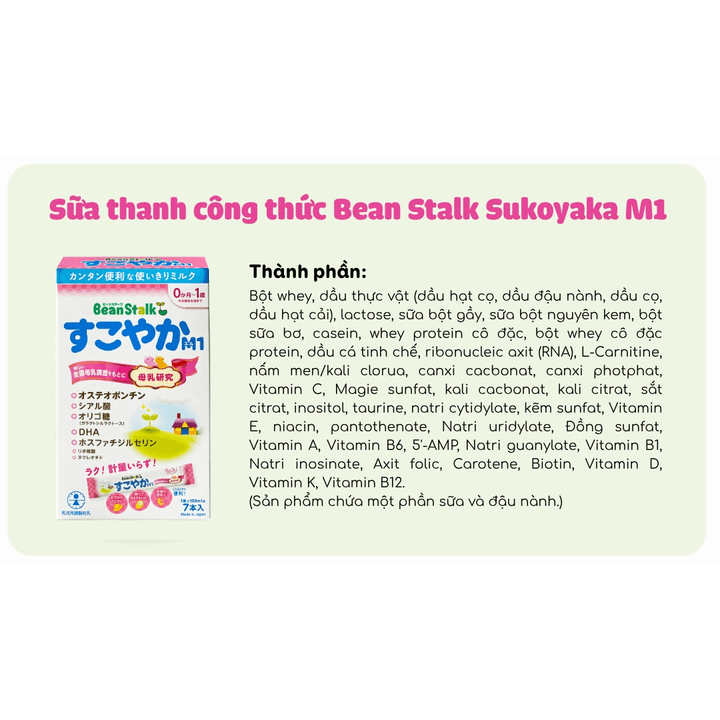 Bean Stalk Sukoyaka M1 là sản phẩm dinh dưỡng công thức dành cho bé từ 0 đến 1 tuổi, sản phẩm chứa thành phần chính là: