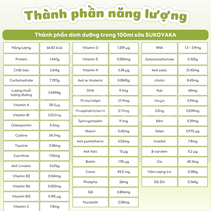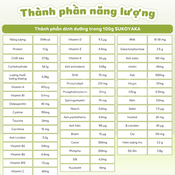 Thành phần dinh dưỡng có trong 100g SUKOYAKA: năng lượng 514 kcal