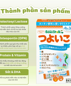 Sữa thanh công thức Bean Stalk Tsuyoiko là sản phẩm dinh dưỡng công thức đặc biệt, được nghiên cứu dành riêng cho trẻ từ 9 tháng đến 3 tuổi, giúp bổ sung và hỗ trợ chế độ ăn hàng ngày của bé trong giai đoạn phát triển quan trọng này.