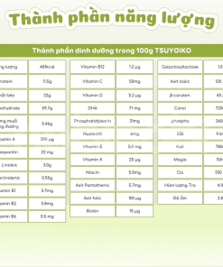 8. Thông tin dinh dưỡng có trong 100g TSUYOIKO: 481 kcal
