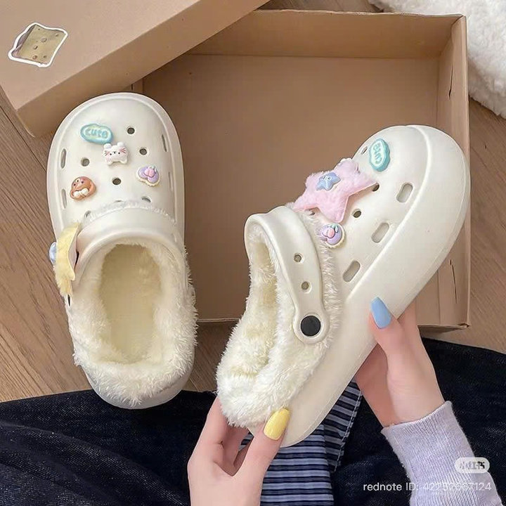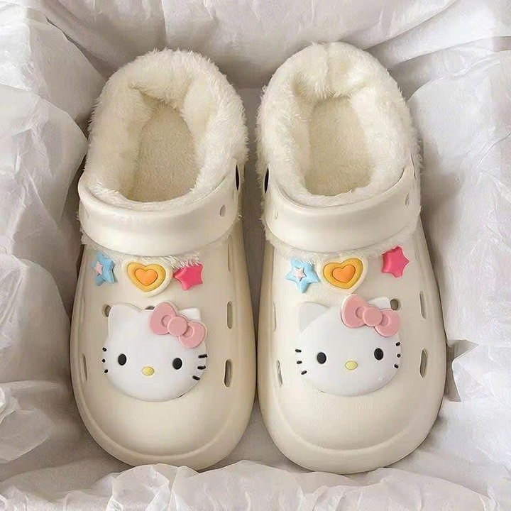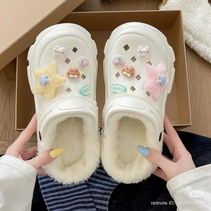 Mẫu sục Eva lót lông mềm mại, mang êm chân, thiết kế dễ thương với charm Kitty & Charm Star xinh xắn. Chất liệu nhẹ, thoải mái khi đi trong nhà hay ra ngoài đều phù hợp.