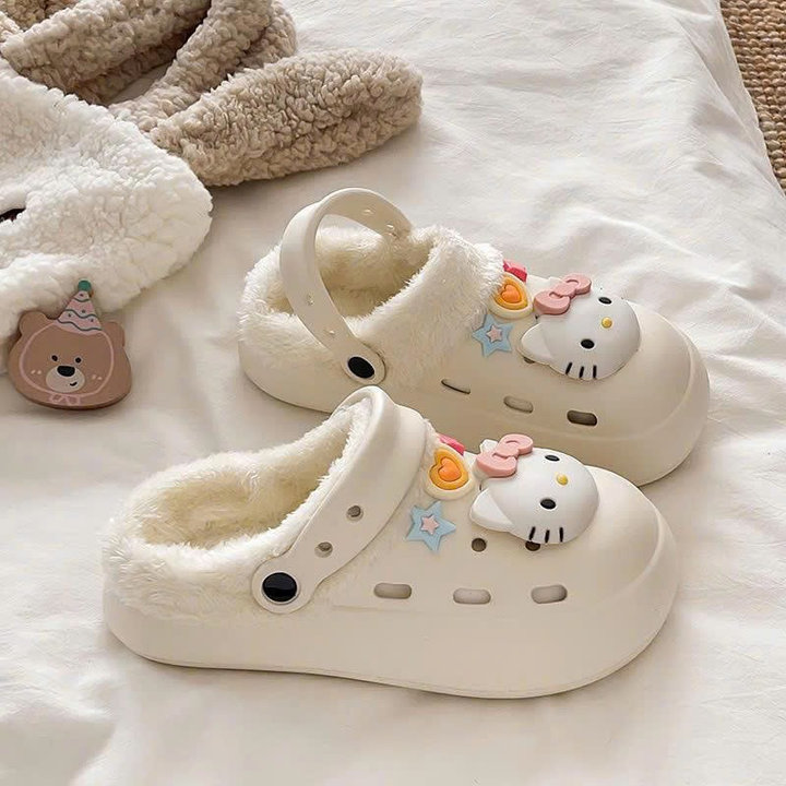 🥿 SỤC EVA LÓT LÔNG GẮN CHARM KITTY & STAR – NHẸ ÊM, XINH XẮN MỖI NGÀY 💗