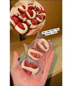Táo đỏ kẹp sữa + dâu tây sấy dẻo . Ngon lắm ạ. Mùi thơm táo đỏ, sữa lạc đà hòa quyện với vị dâu tây phải nói là rất là hợp và cuốn luôn đó ạ. Các bác hãy thử 1 lần và cảm nhận đi nhaaa