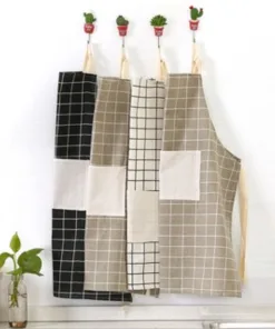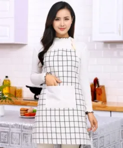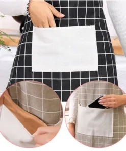 Tạp dề nội trợ dạng yếm kẻ Caro có thiết kế cho bạn chiếc túi to để đựng điện thoại rất tiện lợi.