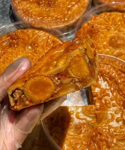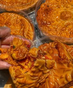 ✅Bánh thiết kế hình tròn tượng trưng cho sự sum họp gia đình đoàn viên ‘! Sợi thịt gà quay nướng truyền thống xé tay không có vụn nát ! Kết hợp với trung muối và nhan thập cẫm , toàn Nguyên liệu xịn sò ‘ Vỏ bánh mỏng cực kì .