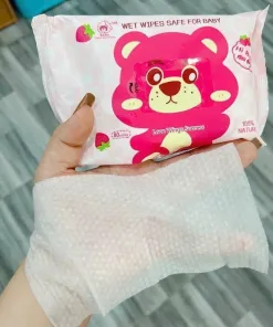 Thùng 10 gói khăn ướt gấu dâu được làm từ chất liệu cao cấp, không gây kích ứng khi sử dụng và phù hợp với mọi loại da.