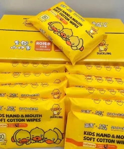 Giấy ướt vịt vàng được làm từ chất liệu cao cấp, an toàn cho mọi loại da. Sử dụng được cho người lớn và cả trẻ em.