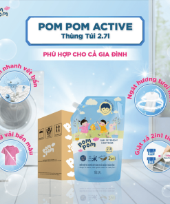 [THÙNG 3 TÚI] GEL GIẶT XẢ 2IN1"LÀNH" CHO CẢ NHÀ POMPOM ACTIVE SẠCH SÂU VẾT BẨN – DƯỠNG MỚI VẢI – LƯU HƯƠNG TÍCH HỢP KHÁNG KHUẨN AN TOÀN CHO ĐỒ LÓT – TÚI 2.7L