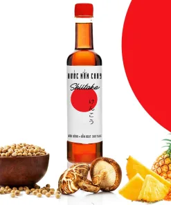 – Nước mắm chay Shiitake nhãn trắng chai nhựa 525ml có thành phần nấm ngọt Shiitake và đậu nành Nhật Bản, dùng ăn chay hoặc thay thế nước mắm nước tương. Nấm ngọt Shiitake có trong bữa ăn hàng ngày và là bí quyết sức khỏe của người Nhật.