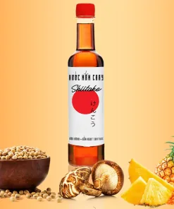 Thùng 6 chai nước mắm chay Shiitake cao cấp nhựa 525ml làm từ nấm ngọt Shiitake Nhật Bản, đậu nành, thơm dứa, đường phèn và muối tinh khiết.