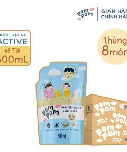 - Tên sản phẩm: [Thùng] Nước Giặt Xả Active Chuyên Biệt Dành Cho Bé Năng Động (12 – 36 Tháng) 600ml – Pom Pom – 8 Túi/Thùng