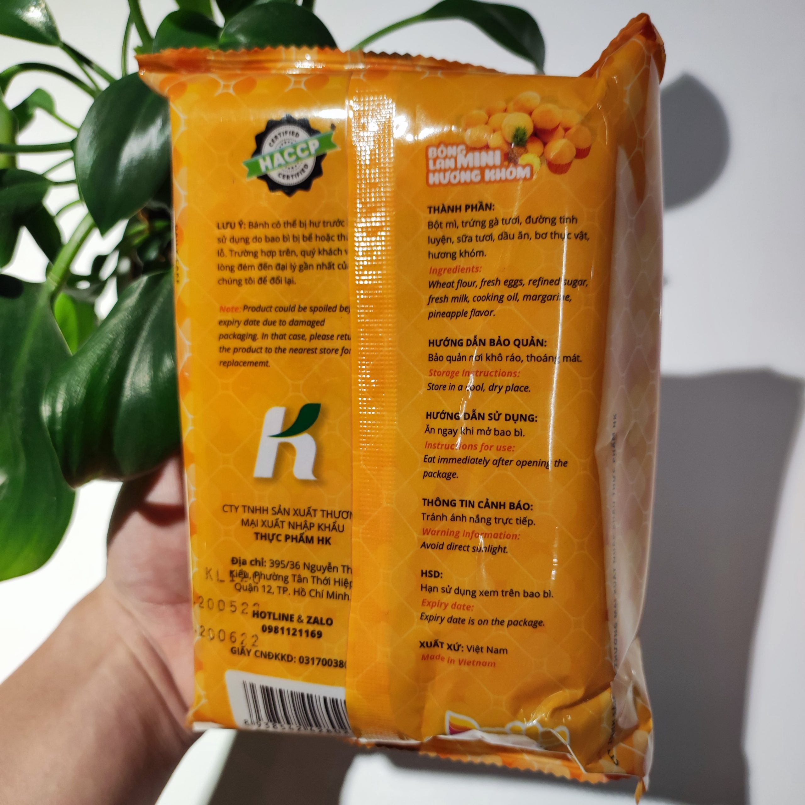 - Thành phần: Bột mì, trứng gà tươi, đường tinh luyện, sữa tươi, dầu ăn, bơ thực vật, hương khóm