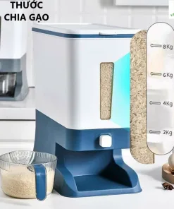 - Nắp thùng dễ đóng mở: Bạn có thể dễ dàng mở nắp và đổ gạo vào. Nắp thùng kín giúp bảo vệ gạo khỏi bụi bẩn và côn trùng hay các loài gặm nhấm.