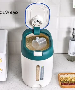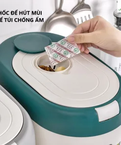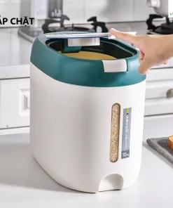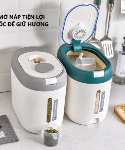 - Nắp thùng dễ đóng mở: Bạn có thể dễ dàng mở nắp và đổ gạo vào. Nắp thùng kín giúp bảo vệ gạo khỏi bụi bẩn và côn trùng hay các loài gặm nhấm.