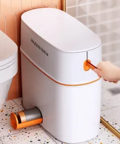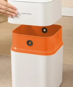 – Thiết kế đơn giản, sang trọng, lịch sự: Thùng rác JOYBOS được thiết kế với vẻ ngoài khá đơn giản, tông màu trắng, cam vô cùng thanh lịch và sang trọng. Với kích thước thân chỉ 15.5cm, thì bạn có thể dễ dàng đặt thùng rác ở các khe hẹp trong không gian, tiết kiệm diện tích tối đa, tránh gây vướng víu