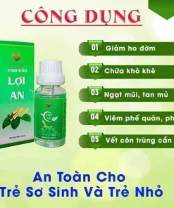 - Tinh dầu Lợi An chính hãng là sản phẩm đang tạo nên cơn sốt tại Việt Nam khi mà thời tiết chuyển mùa gây nên tình trạng ho, sổ mũi, ho có đờm, khò khè, cảm cúm, cảm lạnh ở trẻ, đặc biệt dùng tốt cho trẻ sơ sinh còn đang non yếu chưa thích nghi kịp với môi trường bên ngoài bụng mẹ. Chính vì vậy Tinh dầu Lợi An được tạo ra với mong muốn gửi đến tận tay tất cả các bà mẹ bỉm sữa giúp long đờm và giảm ho đờm sổ mũi, khò khè cho bé.