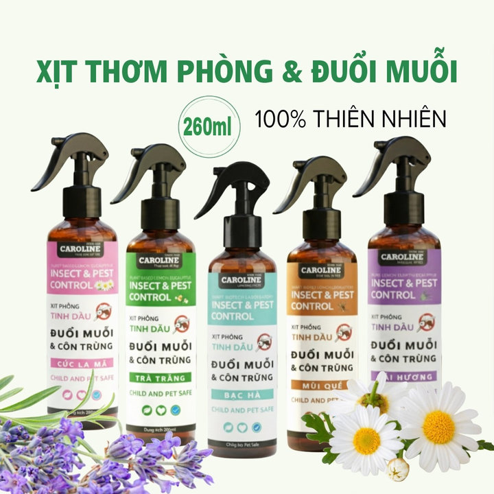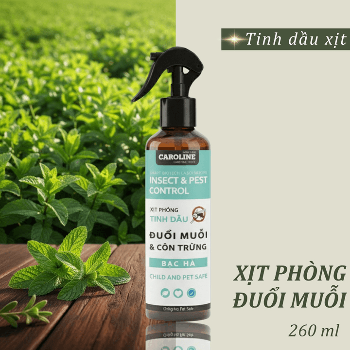 Tên sản phẩm : Tinh dầu xịt phòng Bạc Hà Caroline khử mùi, thơm phòng, đuổi muỗi & côn trùng
