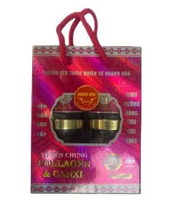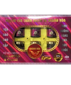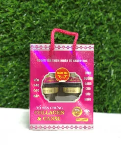 - Tổ yến chưng Collagen canxi Khánh Hòa Yến Sào là sản phẩm tổ yến chưng với hàm lượng yến 25%, Collagen, canxi, đường phèn loại 1. Mang lại sản phẩm chất lượng, vị thanh mát và bổ dưỡng.