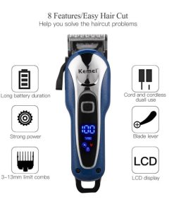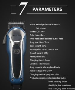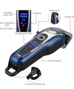 – Sản phẩm có màn hình LCD hiển thị dung lượng pin lưỡi thép không gỉ, không làm tổn thương da đầu, động cơ mạnh mẽ , có chức năng tubo với hai tốc độ có thể điều chỉnh, thích hợp cho tất cả các loại tóc cắt tỉa.
