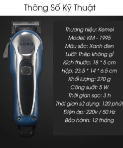– Tông đơ KM 1995 với độ sắc bén mang đến cho bạn sự nhanh chóng và hiệu quả trong việc cắt tóc hay tỉa tóc…với thiết kế rất sít của đầu lược nên rất an toàn cho người được cắt tóc, công tắc sử dụng an toàn cách nhiệt cách điện đảm bảo an toàn cho người sử dụng.