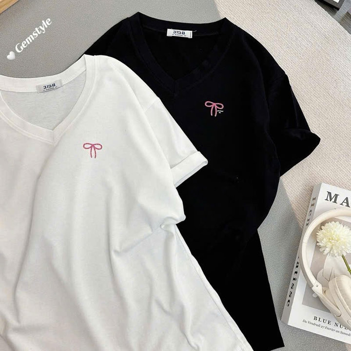 – Tên Sản phẩm: TỔNG HỢP ÁO PHÔNG CỔ TIM IN HÌNH NƠ Ở NGỰC-áo phông nơ ngực