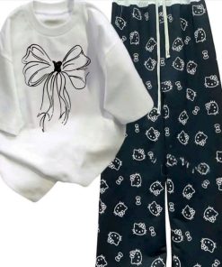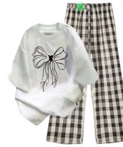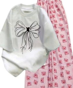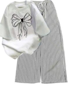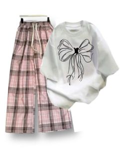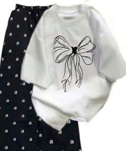 – Tên Sản phẩm: Tổng hợp các sét Bộ Đồ Quần Ống Rộng + mix áo phông Hình Nơ ĐƠN Giản form rộng