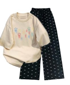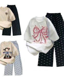 – Tên Sản phẩm: Tổng hợp các set bộ quần họa tiết nơ+ mix áo phông form rộng tay lỡ chất cotton thoáng mát