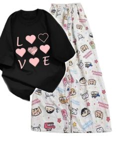 – Tên Sản phẩm: Tổng hợp các sét bộ quần hoạt hình + áo phông form rộng tay lỡ LOVE