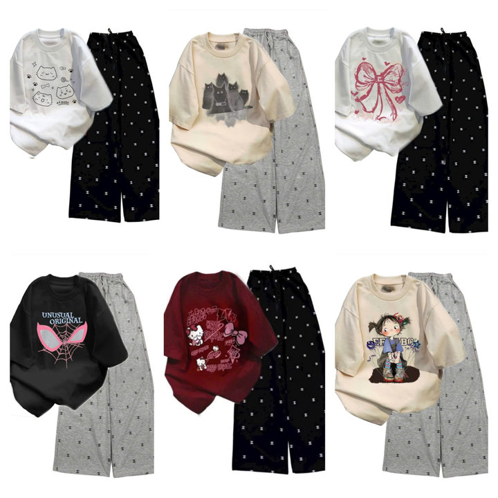 – Tên Sản phẩm: Tổng hợp các set bộ quần ống rộng họa tiết chờ neo+ mix áo phông form rộng tay lỡ
